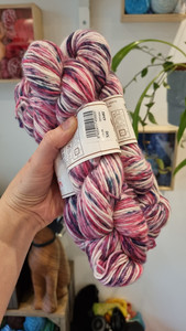 I then asked my daughter to help me find some yarn she would like me to knit a winter hat for her with. With some gentle guidance away from the 100% acrylics on offer (I am a yarn snob and love a natural, sustainable fibre in my knitting hands), we settled on a bright and fun yarn called Pluton from Spanish brand Katia.